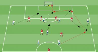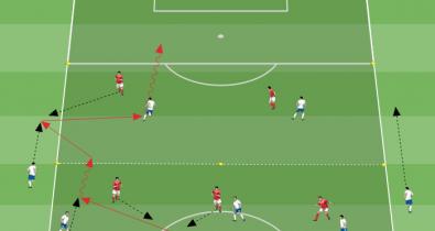Ejercicio para entrenar al equipo en posesión a atraer a los rivales hacia el balón para liberar las líneas de paseTáctica