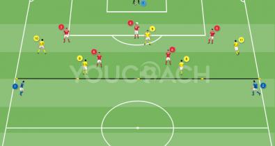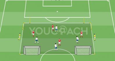 Juego a tema para trabajar los principios ofensivos como la amplitud, movilidad para el ataque de la portería y las transicionesTécnica