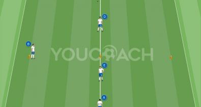 Situación simplificada de 1vs1 para entrenar la transmisión, recepción y desmarque/marcaje en el duelo individual.Táctica