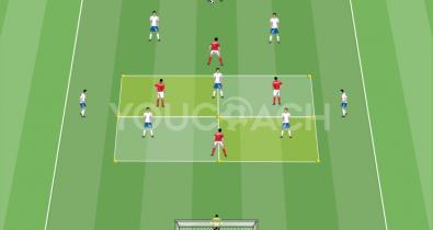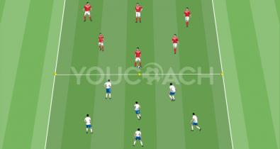 Partido a tema defensores y centrocampistas contra delanteros para la construcción de la maniobra con finalización y transicionesTáctica