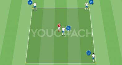 Situación simplificada de 1vs1 para entrenar la transmisión, recepción y desmarque/marcaje en el duelo individual.Táctica