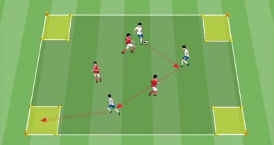 Posesión de balón y búsqueda de espacios: 3 contra 3 + 2 comodines