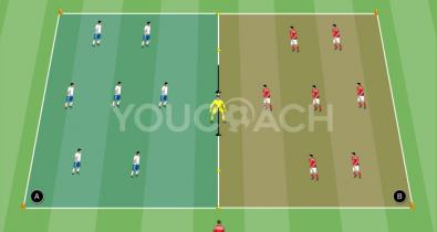 Partido a tema en un campo de juego dividido en 2 partes por una portería centralTécnica del portero