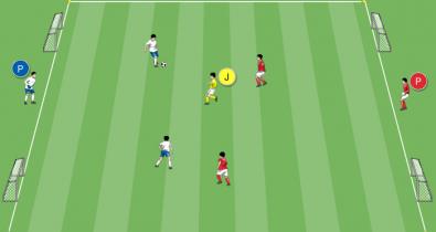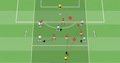 Small-Sided Game para el futbol Base que entrena el desarrollo rápido de la acción mediante desmarques de apoyo y en profundidad.Técnica