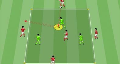 Ejercicio para entrenar al equipo en posesión a atraer a los rivales hacia el balón para liberar las líneas de paseTáctica