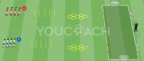 Situación simplificada de 3vs1 para entrenar la posesión de balón y las transiciones rápidas |