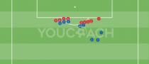 Tarea situacional para la finalización a portería con sucesivo 2vs2 para mejorar la capacidad de decisión y la reacción a las transiciones. |