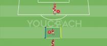 Propuesta de acción ofensiva para el sistema 4-3-1-2 con finalización del delantero después de un pase del media punta |