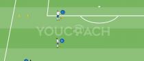 - A, que pasa el balón inicialmente a B, puede darles apoyo durante la acción. Se crea una situación de 2vs1