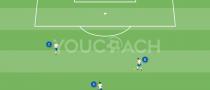 Ejercicio para el movimiento en profundidad de los delanteros y pase al espacio. |