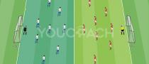 Situación simplificada de 1vs1 para entrenar la transmisión, recepción y desmarque/marcaje en el duelo individual. |