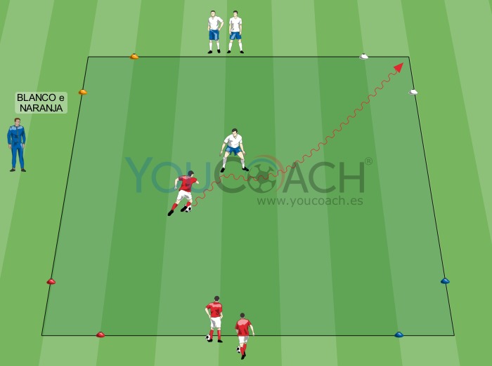 - En el momento de la entrada en el cuadrado el entrenador dice dos colores (blanco y naranja en la figura)