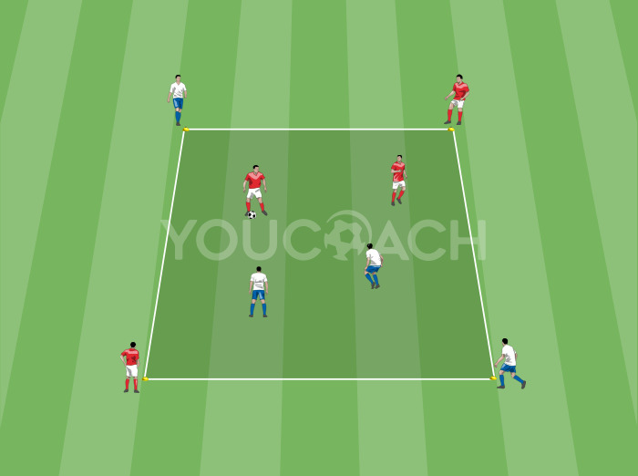 Posesión de balón - Small sided games 4 contra 4 útil para entrenar la posesión de balón y para crear situaciones de juego ofensivas -