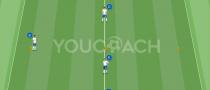 Situación simplificada de 2vs1 lateral que permite focalizar la atención en los tiempos de desmarque de los extremos |