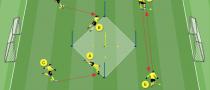 Small-sided Game 3 contra 2 para la finalización a favor de los atacantes con contraataque de los defensores tras recuperación del balón. |