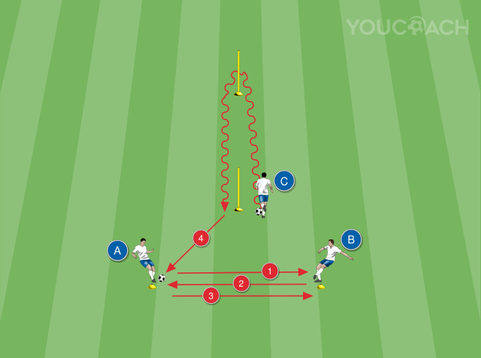Pase - Tarea útil para mejorar el pase y el control orientado eficaz también para estimular los tiempos de juego -